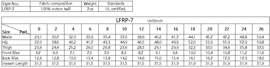 • 100% cotton twill brush FR 7oz