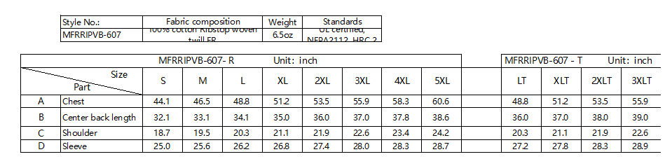 • 100% cotton Ripstop woven twill FR, 6.5oz