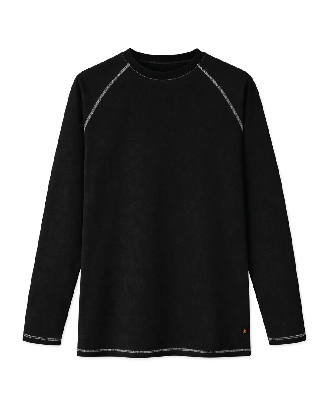 Forge Fr Men's Contrast Stitch Black Light Weight Crew Neck Long Sleeve T-shirt