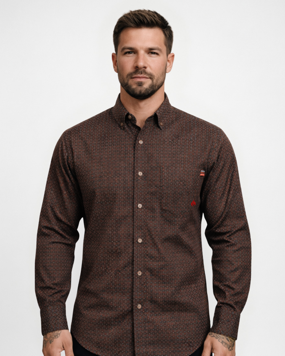 Forge Fr Men's Brown Printed Long Sleeve Shirt