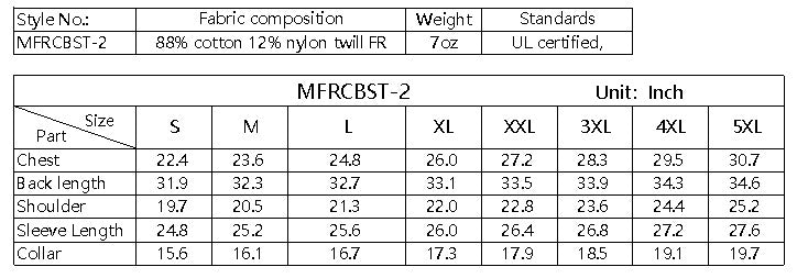 • 88% cotton 12% nylon twill FR, 7oz