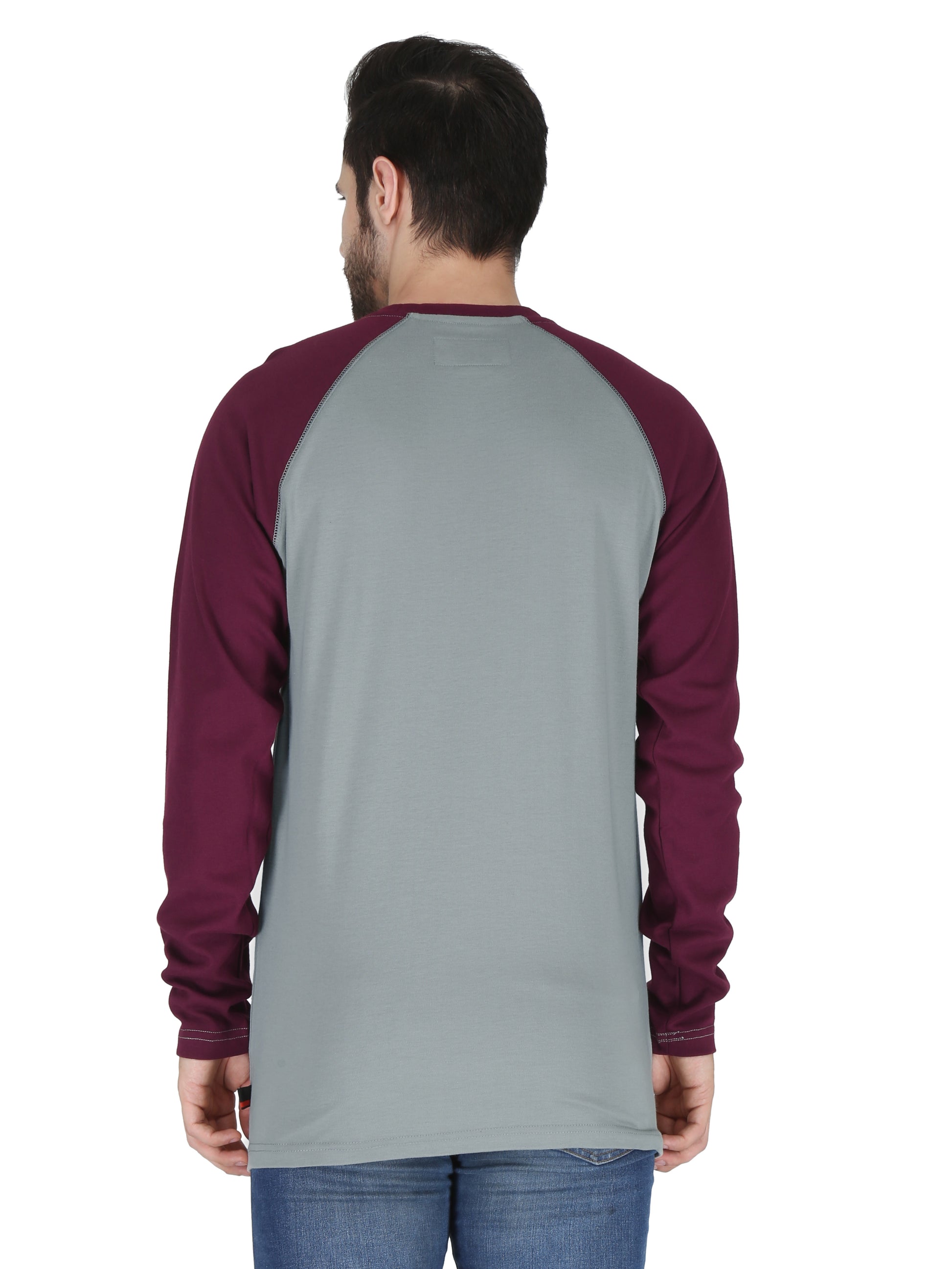 Forge Fr Men's Grey & Burgundy Baseball Long Sleeve T-shirt